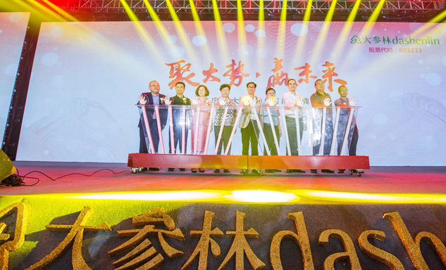 GA黄金甲药业集团董事长刘景萍女士与大参林医药集团董事长柯云峰先生、中国医药商业协会执行会长付明仲女士等嘉宾共同开启了“聚大势•赢未来"大参林工商合作峰会的大幕。